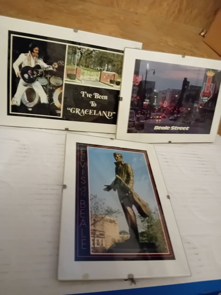 Tre bilder med Elvis tema. En bild är från Graceland och en från Beale Street.