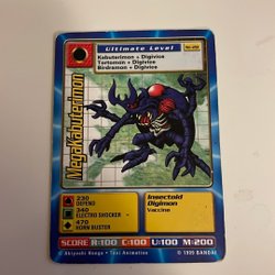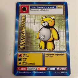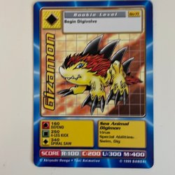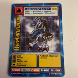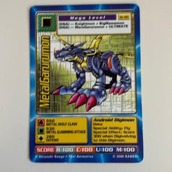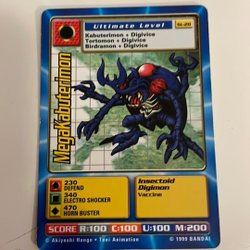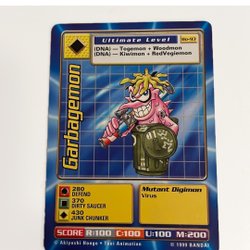 Digimon kort med olika karaktärer och förmågor. Korten har olika nivåer som Ultimate Level, Champion Level och Mega Level. Det finns även Power Option-kort som "Powerblast" och "Digivolve RED".
