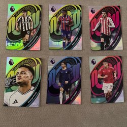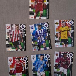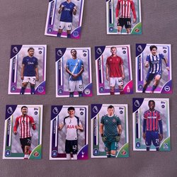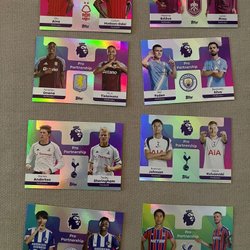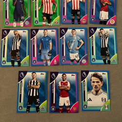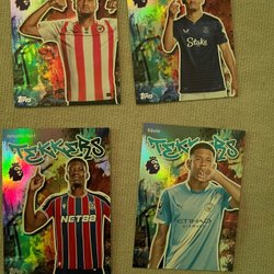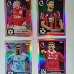 Samling av Topps Retro Threads fotbollskort med spelare som Micah Richards (Manchester City), Jamie Carragher (Liverpool FC), Jimmy Floyd Hasselbaink (Leeds United), Louis Saha (Fulham), Mark Noble (West Ham United), Simon Francis (AFC Bournemouth) och Stan Collymore (Nottingham Forest).