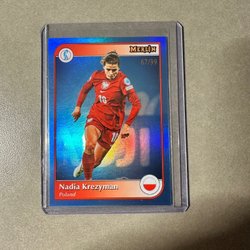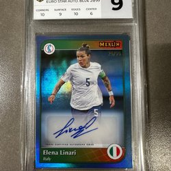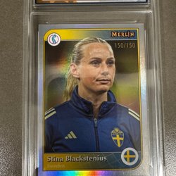 Säljer ett samlarobjekt: Fridolina Rolfö autografkort från 2025 Topps Merlin UEFA-serien. Detta är ett Matchball Auto-kort, numrerat 5/5 och graderat av RaukCard med betyget 9.