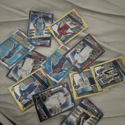 Fotbollskort med spelare som Mohamed Salah, Kylian Mbappé, Kevin De Bruyne och Bukayo Saka.