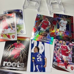 Samling av fotbollskort från b.la Champions League. Perfekt för samlaren eller fotbollsentusiasten. Innehåller olika spelare och lag från turneringen.