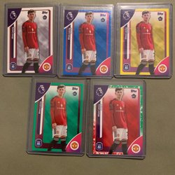 Fotbollskort från Topps med spelare som Louis Saha (Fulham), Simon Francis (AFC Bournemouth), Taiwo Awoniyi, Robbie Fowler och Mark Noble (West Ham United).
