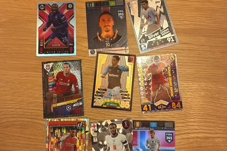 Fodboldkort fra forskellige hold og spillere. Se billederne for detaljer.