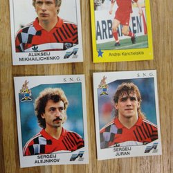 Fotbollskort med spelare från Rysslands landslag. Korten inkluderar spelare som Pavel Pogrebnyak, Vasili Berezutski, Roman Shirokov, Vyacheslav Malafeev, Andrey Arshavin, Konstantin Zyryanov, Yuri Zhirkov, Aleksandr Anyukov, Aleksandr Kerzhakov, Roman Pavlyuchenko, Alan Dzagoev, Sergei Ignashevich och Mário Fernandes.