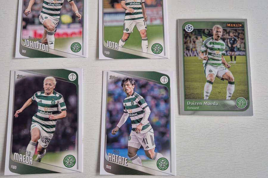 Detta set innehåller fotbollskort med spelare från Celtic FC. Korten inkluderar Alistair Johnston (DEF), Jota (FWD), Daizen Maeda (FWD) och Reo Hatate (MID).