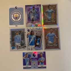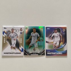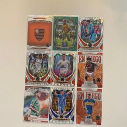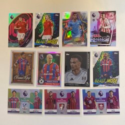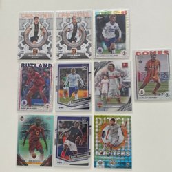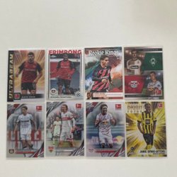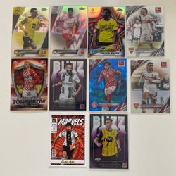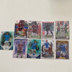 Fodboldkort med motiver af forskellige spillere. Kortene er fra Bowman Chrome og Topps Finest serierne.