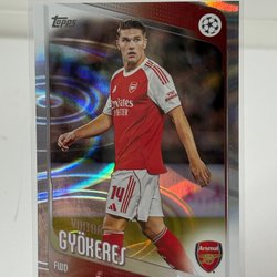 Fotbollskort med spelare från Arsenal. Korten inkluderar Cesc Fabregas, Gabriel Martinelli, Declan Rice, Martin Ødegaard, Viktor Gyökeres och Bukayo Saka.
