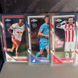 Säljer en samling fotbollskort från Topps. Många grymma numrerade kort bland annat Bruno Fernandes /99, Vini Jr /250 och R9 /250 plus en chrome Haaland och en fin Estevao!