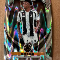Fotbollskort med Juventus-spelare. Korten inkluderar Khephren Thuram, Jonathan David, Gleison Bremer och Kenan Yildiz.