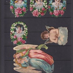 Tolv gamla bokmärken med änglar. Ett med lagning, se bild. (1811) Högsta höjd 10 cm. Porto 20 kronor.