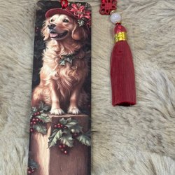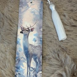 Vackert bokmärke med blommigt motiv och en vit tofs. Perfekt för bokälskare.