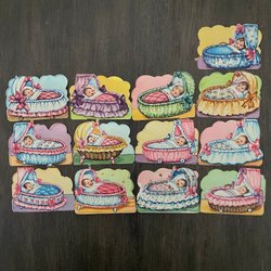 Vintage die cut scrap paper E.O serie 8057, konstnär/tecknare Ewa Schildt Bebisar 3.