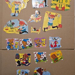 En karta med Pippi Långstrump bokmärken Innehåller figurer som Pippi, Tommy och Annika, Villa Villekulla, Herr Nilsson, Kling och Klang och andra karaktärer och föremål från Pippi Långstrumps värld.