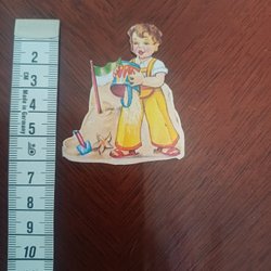 Julkort med motiv av barn och en julgran. Kortet har glitterdetaljer. Märkt: c bromma kortförlag 21x15 cm