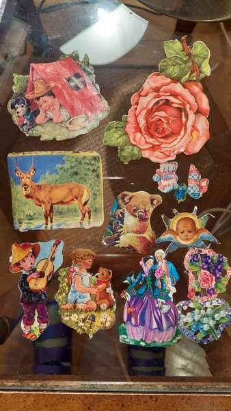 Dessa bilder är i olika former och storlekar. De inkluderar motiv som en pojke med en hund, en ros, ett rådjur, en koala, en ängel, en pojke som spelar gitarr, en flicka med en nallebjörn, ett par i historiska kläder och blommiga arrangemang.