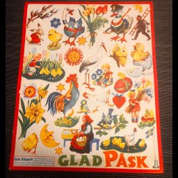 påskmotiv, tupp, kycklingar, stork, barn, blommor m.m.