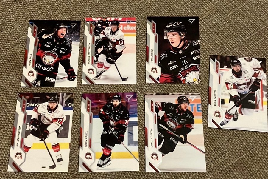 Ishockeykort inkluderar Robin Salo, Petter Vesterheim, Topi Niemelä, Johan Ivarsson, Robin Hanzl, Carl Persson och Seth Barton.