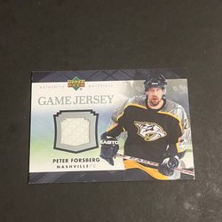 Säljer ett samlarkort med Peter Forsberg i Nashville Predators tröja. Kortet innehåller en bit av en matchanvänd tröja. Ett unikt tillskott till samlingen för hockeyälskaren!