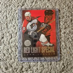 Två samlarkort från Upper Deck Collector's Choice, HardWare Heroes-serien. Innehåller Eric Lindros, vinnare av Hart Memorial Trophy och Lester B. Pearson Award, samt John LeClair, NHL First Team All-Star.