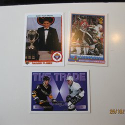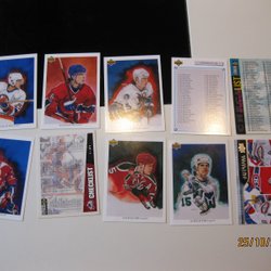 Samling av hockeykort med spelare som Scott Stevens, Cam Neely, Niklas Andersson, Doug Gilmour, Dirk Graham, Landon Wilson och andra.