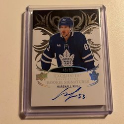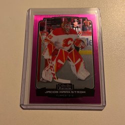 Här säljes ett hockeykort av Elias Lindholm från Calgary Flames. Kortet är från serien The Cup och är numrerat 15 av 49.