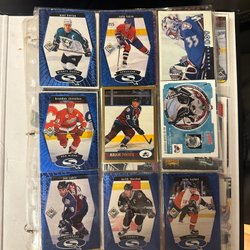 En blandad samling av hockeykort från olika årtal och serier. Innehåller kort med kända spelare och lag från både NHL och internationella turneringar. Finns ett antal bilder som är helt nya, endast uppackade för att ta kort.