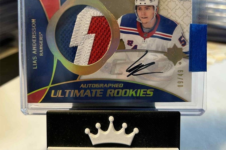 Här är ett autograferat Lias Andersson Ultimate Rookies hockeykort. Perfekt för samlaren!
