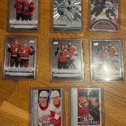 Ett parti ishockeykort med olika spelare och lag.