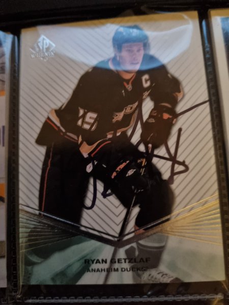 Hockeykort föreställande Ryan Getzlaf från Anaheim Ducks. Kortet är av märket SP Authentic.