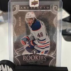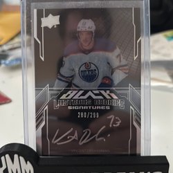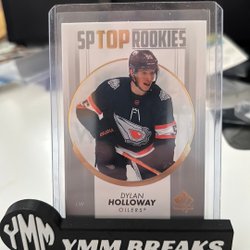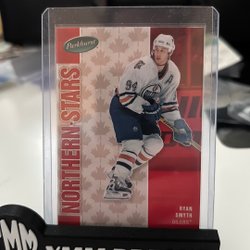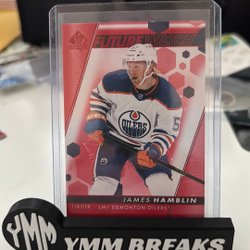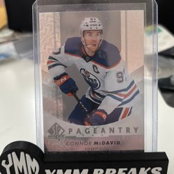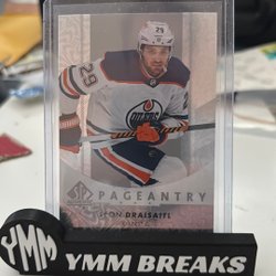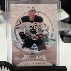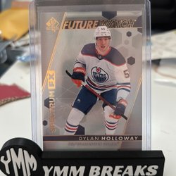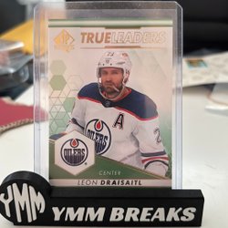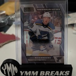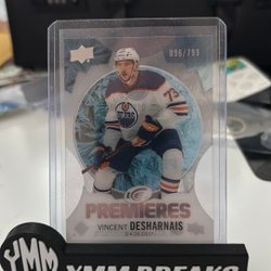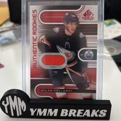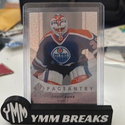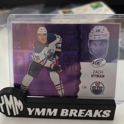 Detta är ett hockeykort med en bild av en spelare i aktion. Kortet är i en skyddande plastficka och står på en svart hållare med texten "YMM BREAKS".