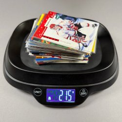 Sju ishockeykort med olika spelare och lag.