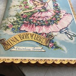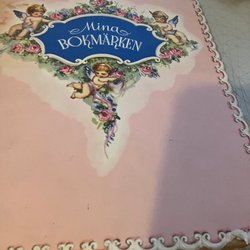 Mina bokmärken är en bok för att samla bokmärken. Boken har en rosa framsida med tre änglar som spelar instrument. Baksidan är också rosa med en duva som flyger med ett brev i näbben. ISBN: 7317449090002.
