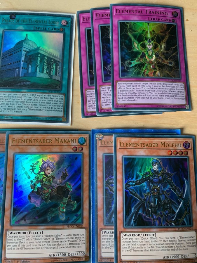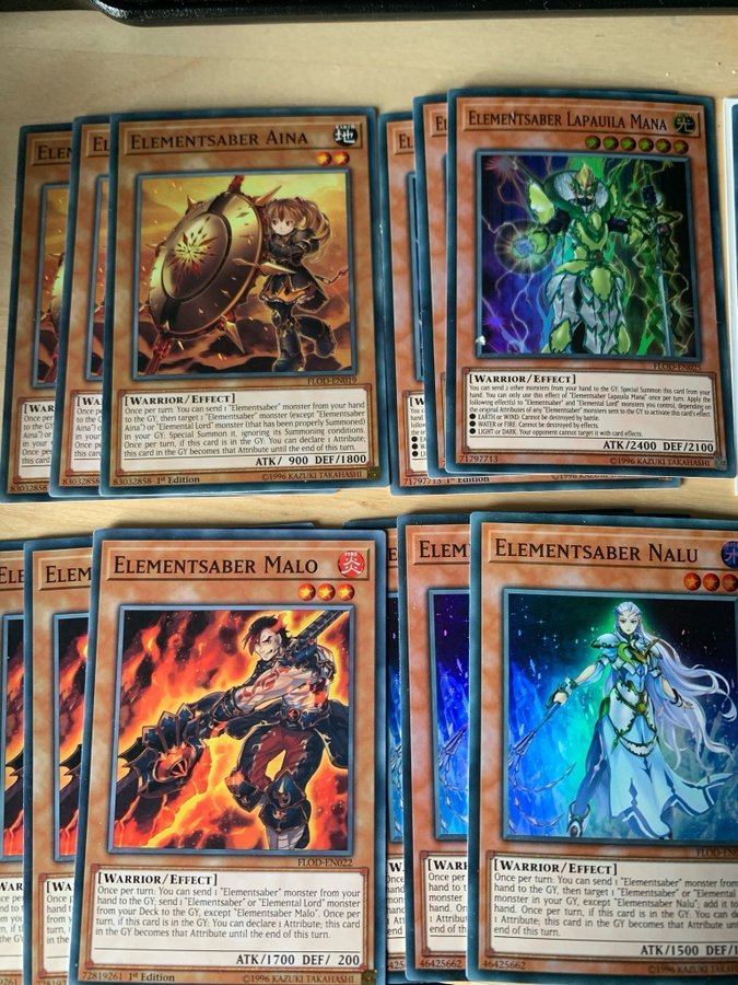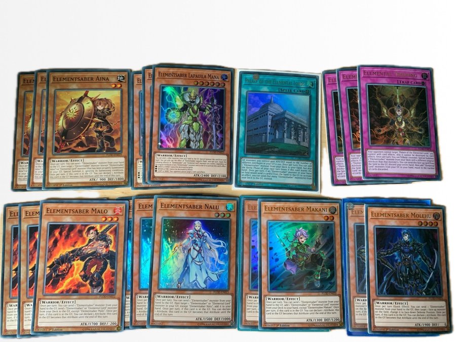 Säljer ett set med Elementsaber kort. Perfekt för Yu-Gi-Oh! samlare och spelare.