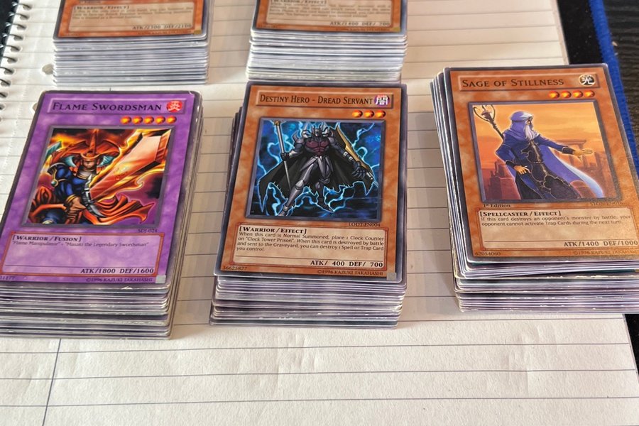 18 Yu-GI-OH i rätt bra skick. Väldigt många 1st Edition kort i högarna.