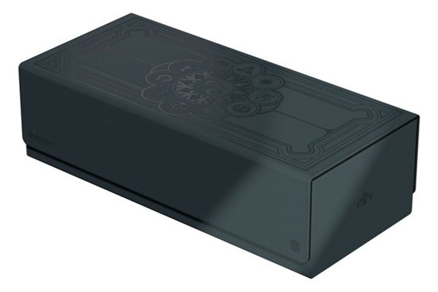 Gather the guilds of Ravnica! The stunning Arkhive 1000+ Xenoskin from the "Guild Summit" series is the perfect storage place for larger collections, a cube, or several deck boxes - for example our ten Boulder 100+ in the guild design. The lid, which is completely removable for the first time on the Arkhive, is attached on both sides with a strong magnetic closure as well as our trusted ZnapClaw mechanism and bears the symbol of the Guildpact. The Arkhive 1000+ Xenoskin is made from durable Xenoskin material.