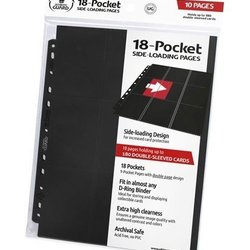 High-quality 9-pocket pages, that fit in almost any D-Ring-Binder, thanks to the double reinforced 11-hole strip. Each pack contains 100 pages for storing and carrying at least 900 double-sleeved cards (9 per page).