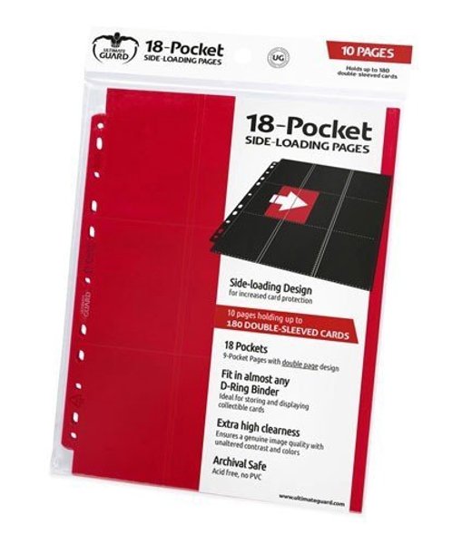 Ultimate Guard 18-Pocket Pages (Mappelommer til Ringbind/11 Huller)Side-Loading Red (Rød) (10)