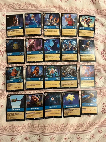Blandat med kort från spelet Lorcana