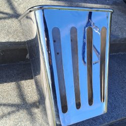 Gamla mått 41 cm × 48 cm . 1970-tal / början av 1980- tal. Aluminium. Kantvikt. 11 st fästhål uppe och nere. Reflexfolie är krackelerar och vädernött.