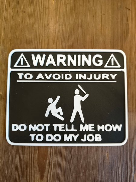 Skylt tilverkad i plast.