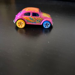 Dekorativ plåtskylt med motiv av en Volkswagen buss och en kalifornisk vägskylt.