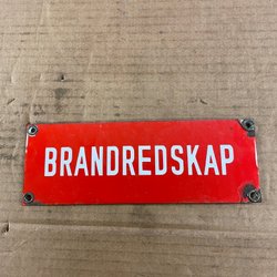 Gammal fin skylt i gjuten aluminium.