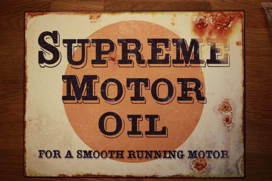SUPREME MOTOR OIL FOR A SMOOTH RUNNING MOTOR skylt i chabby chic ca 26x35 cm
