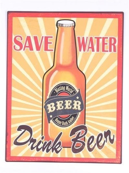 SAVE WATER DRINK BEER Skylt i s k chabby chic-stil ca 30x40 cm Dekorativ skylt