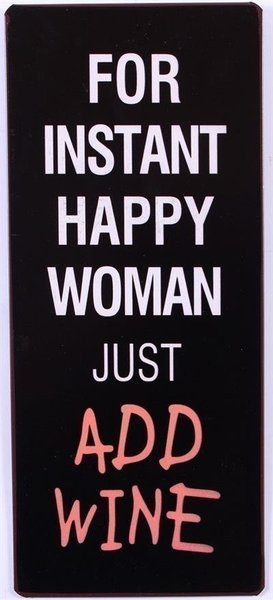 FOR INSTANT HAPPYWOMAN JUST ADD WINE Skylt i chabby chic 13x31 cm