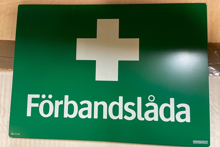 Förbandslåda skylt