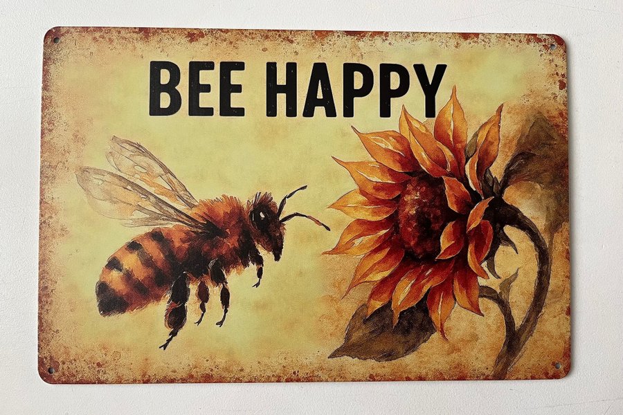 Plåtskylt ”BEE HAPPY”