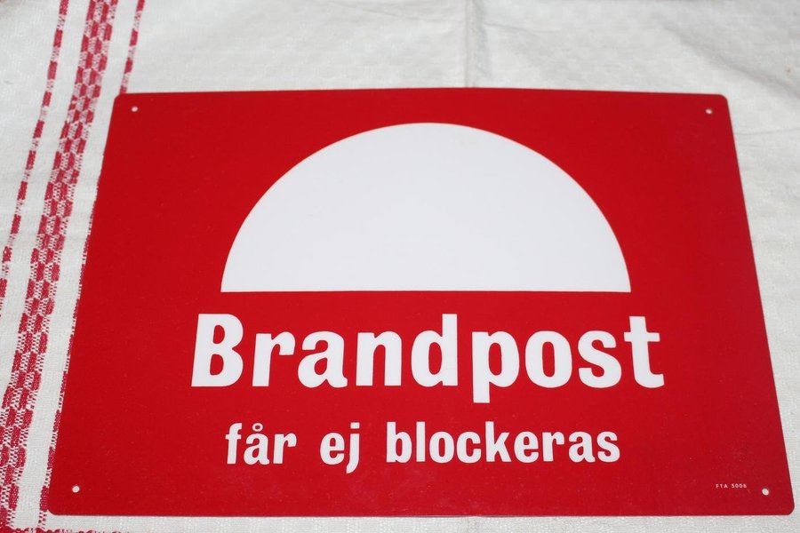BRANDPOST FÅR EJ BLOCKERAS. SKYLT.