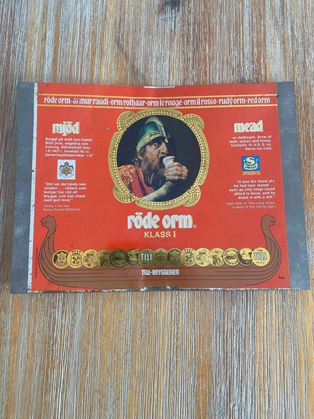 Detta är en vintage metallskylt för Röde Orm, ett svenskt mjöd producerat av Till-Bryggerier.
